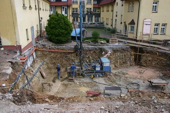 Zu diesem Zweck wurden durch unsere Firma die erforderlichen Bohrungen für die Wärmepumpenanlage vor Baubeginn in der Baugrube durchgeführt. Nach erfolgter Anbindung wird darauf die Bodenplatte gegossen und das Haus fertiggestellt. Das Josefshaus wird dann als Gästehaus genutzt.
